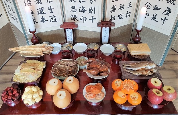(1) 제사상 차리기 : 차례상 차림은 전통적인 원칙에 따라 정성을 다해 준비합니다. 음식은 주로 조상들이 생전에 좋아하던 것을 올리며, 명절 음식인 떡국(설날)이나 송편(추석)이 포함됩니다.