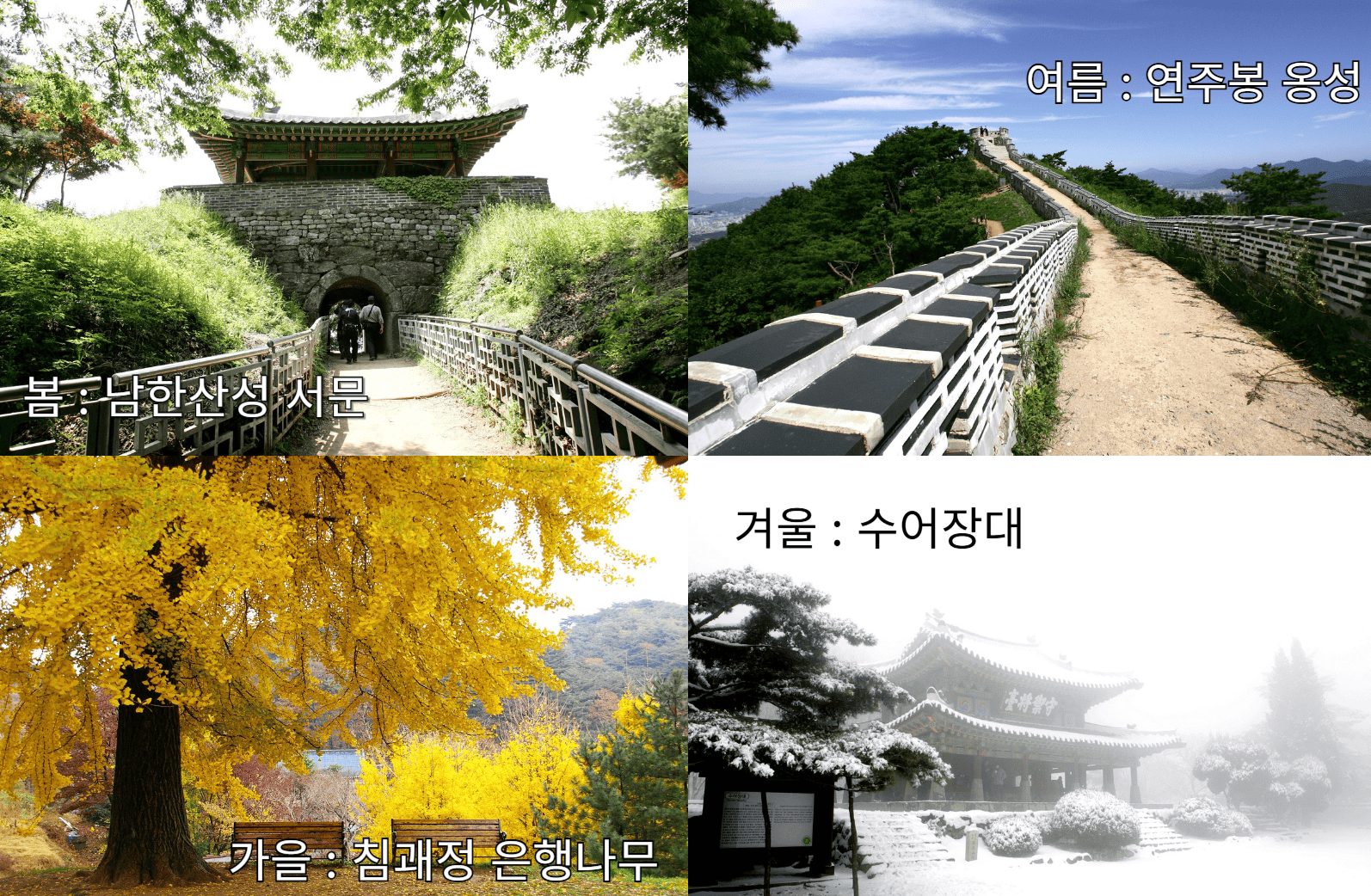 * 남한산성 둘레길 : 성곽을 따라 산책하며 자연과 역사를 동시에 느낄 수 있습니다.