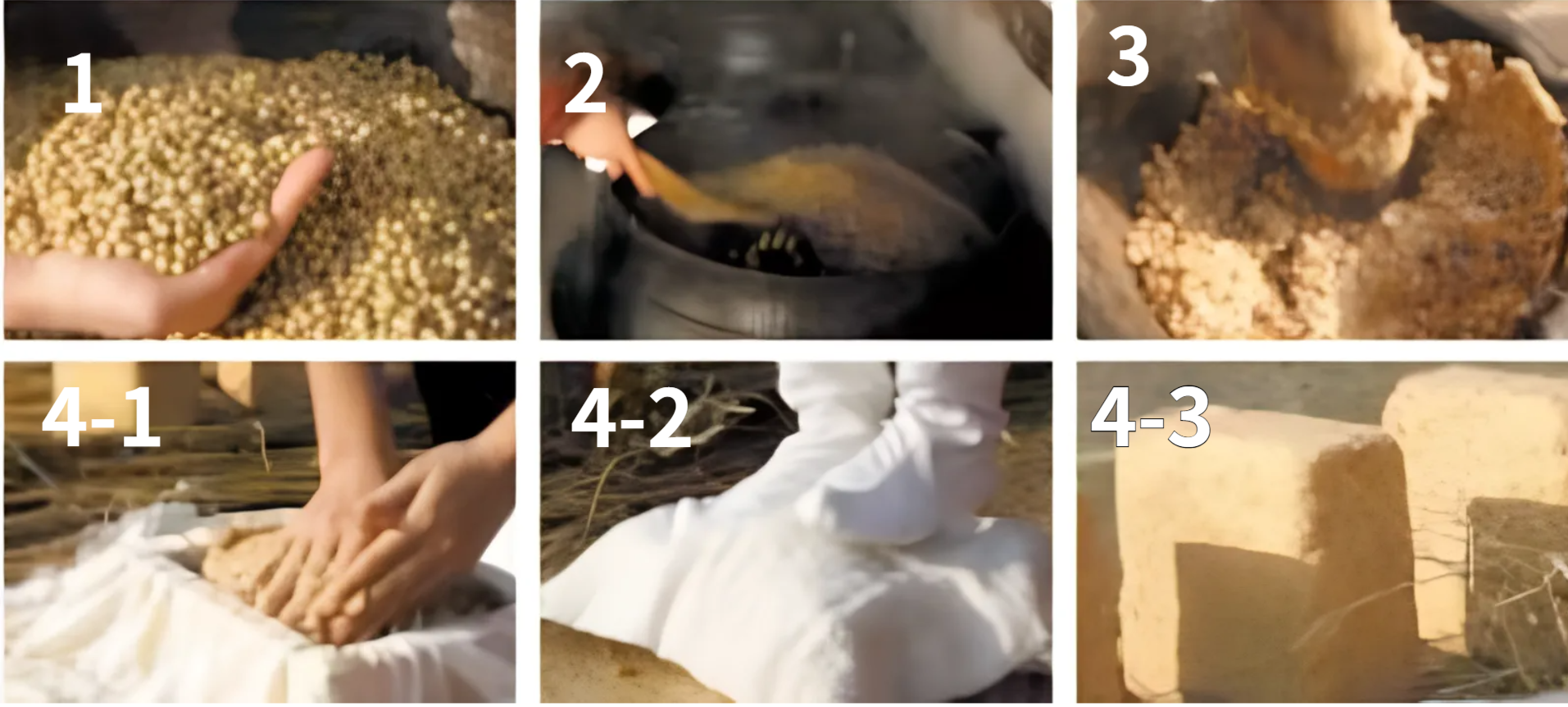 1. 메주 만들기 : 콩을 삶아 으깬 후 메주 틀에 넣어 굳히는 것