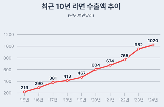 2024년, K-라면 수출액이 10억 달러를 돌파하며 역대 최고 기록을 달성했습니다! 🎉 61년 전, 삼양식품이 한국 최초의 라면을 출시한 이후 끊임없는 혁신과 한류 열풍에 힘입어 K-라면은 이제 세계인의 입맛을 사로잡는 글로벌 푸드로 자리매김했습니다.
